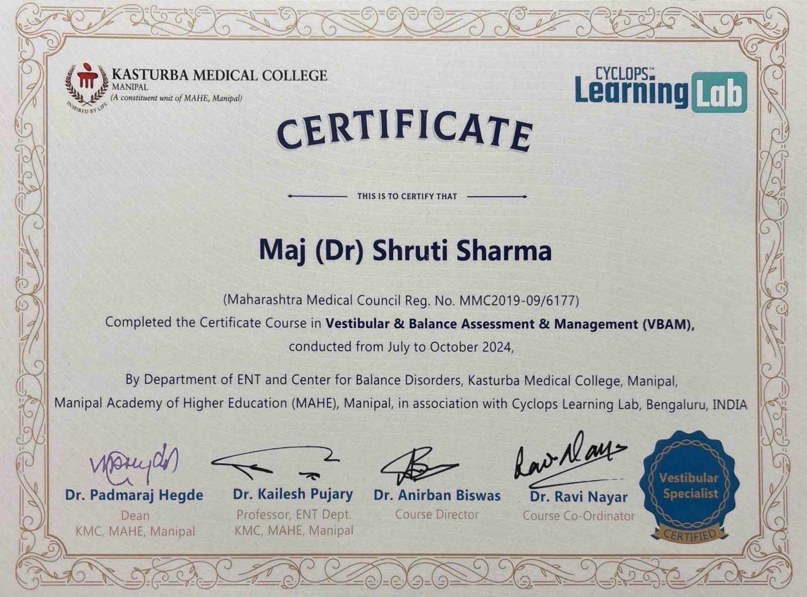 Certified Vestibular Specialist